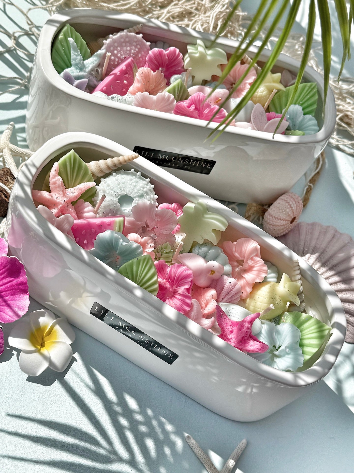 Découvrez un mélange séduisant de fondants parfumés, de bougies parfumées et de bâtonnets parfumés, tous imprégnés de senteurs fraîches et ensoleillées qui illumineront votre intérieur.